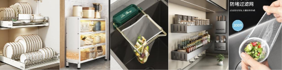本次厨房收纳超级家倍日活动,精选京东采销家厨房自留同款好物,如碗碟架、厨房置物柜、调料架等,帮助消费者打造更加整洁、清爽的秩序感厨房。生活宣言碗碟置物架,集合抽拉、沥水、收纳、分隔等功能,大容量一体式收纳,百亿补贴后仅需73.3元,作为拉篮平替轻松解决安装问题。帅仕置物柜,窄边设计不占地不挡道,贴墙摆放节省空间。天地鱼免打孔壁挂式置物架,可收纳调料盒、刀铲、筷子、菜板等厨具,让厨房台面更整洁。此外,本王水槽沥水架,精选碳钢材质,加送50只过滤网9.9元包邮到手,前100名仅需1元包邮到家。美丽雅水槽过滤网,细密网孔滤水留渣,厨余无需手抠,轻松一提,即用即抛,200只仅需4.9元。