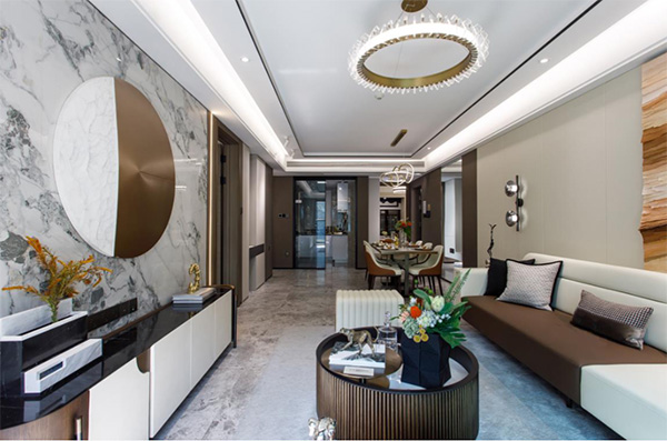 在93㎡与115㎡的户型展示中,柏厨家居以当代艺术手法演绎山水人文与精神气韵,勾勒出充满诗意与品质的空间载体,通过对材料、色彩与功能的精心调配,成功营造了隐于都市的静谧与雅致。